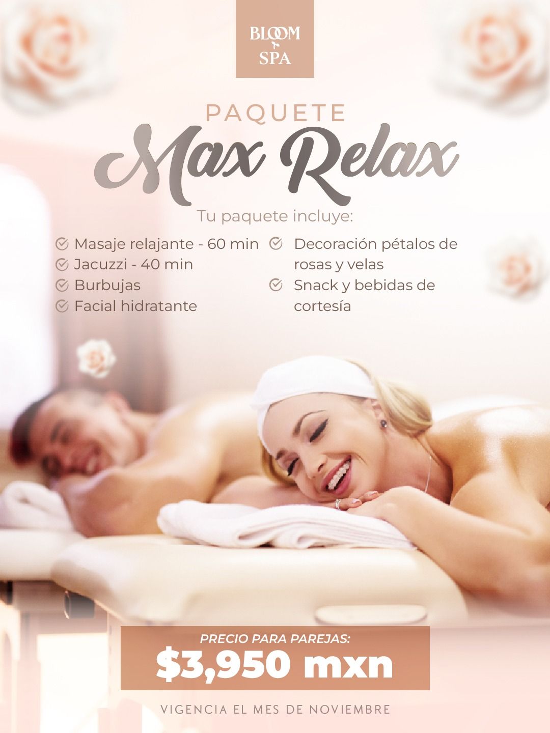 - Cuerpo relajado. Los masajes de nuestro spa alivian la tensión muscular y te brindan una sensación de relajación profunda.